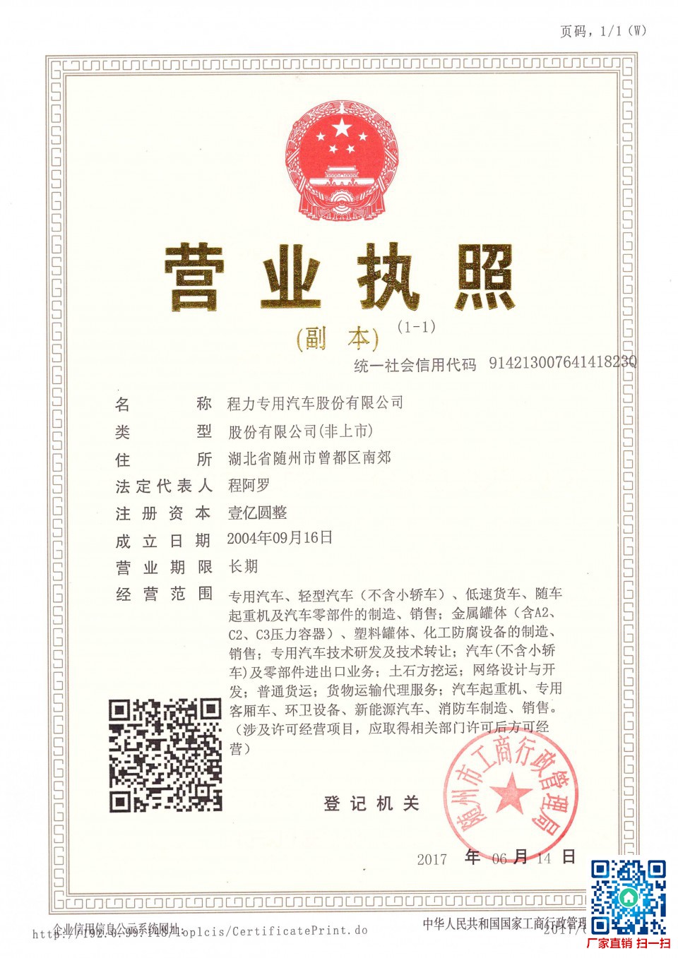 程力集團公司經過(guo)10年(nian)時間爵(jue)越式發(fa)展,現有(you)總(zong)資(zi)產(chan)30億元,占地(di)面積(ji)3000畝,建筑面積(ji)120萬多平方米。目前,集團(tuan)與同行(xing)業(ye)(ye)相比(bi)是生產(chan)資質(zhi)(zhi)最全(quan),產(chan)品品種最多(duo)的(de)(de)(de)(de)企(qi)(qi)業(ye)(ye),公司環衛(wei)車(che)和輕(qing)型專(zhuan)用(yong)車(che)產(chan)銷量排全(quan)國第一(yi)(yi)位,是全(quan)國第一(yi)(yi)家(jia)一(yi)(yi)次性(xing)通過(guo)A2,C2三類壓力(li)容器(qi):低速貨車(che)升級為輕(qing)型裁貨汽(qi)車(che)生產(chan)資質(zhi)(zhi)通過(guo)國家(jia)審(shen)橫驗收(shou):消防車(che)國家(jia)新標準(zhun)的(de)(de)(de)(de)收(shou)的(de)(de)(de)(de)民營(ying)企(qi)(qi)業(ye)(ye).在全(quan)省(sheng)唯一(yi)(yi)取得腦(nao)車(che)起亞機生產(chan)制造(zao)資質(zhi)(zhi)的(de)(de)(de)(de)企(qi)(qi)業(ye)(ye):是中國專(zhuan)用(yong)汽(qi)車(che)之都(dou)一(yi)(yi)腦(nao)州市專(zhuan)用(yong)汽(qi)車(che)領軍企(qi)(qi)業(ye)(ye)程(cheng)力(li)集團(tuan)排名湖北(bei)省(sheng)民營(ying)企(qi)(qi)業(ye)(ye)100強19位,入(ru)圍中國民營(ying)企(qi)(qi)業(ye)(ye)500強一年專(zhuan)用車銷(xiao)售40000余輛!公司主導產品有:灑水車、垃圾車、吸污車,掃地車、油罐車,壓力容器運輸車、化工車、清障車、高空作業車、消防車、隨車吊、冷藏車、廂式車、壓力容器、公路養護車、平板運輸車、散裝糧食車、干混砂漿車、養蜂車、舞臺車、宣傳車、流動售貨車、重型隨車吊、水泥泵車、藥品運輸車、食品運輸車等各系列1040多個品種。公司產品暢銷全國29個省市自治區,井出口俄羅斯、新西蘭、安哥拉等30多國家和地區。主導產品市場占有率為20%以上,到如今的產品出口追及世界30多個國家。公司從市場占有率、產值產量、利稅、發展速度等方面綜合考評在中國專汽車之都一隨州市專用汽車行業目前為第一位.2016年產銷28000臺專用汽車、實現銷售收入26億元。其中:灑水車銷量連續六年占全國第一,環衛車銷量連續三年占全國第一位。公司先后被金融機構評為AAA企業,被湖北省工商局評為"守合同重信用"企業,湖北省科技廳評為"具有發展潛力企業","國家高新技術企業":公司黨委被湖北省省委組織部評為“全省非公有制企業雙強百佳黨組織",省委、省政府授予"湖北省優秀民營企業"等榮譽稱號;公司"程力威"牌灑水車被評為湖北省名牌產品;